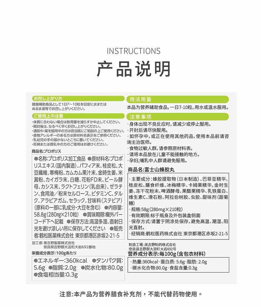 鹤松医药日本富士山蜂胶免疫力营养保健品150mg*210粒装单瓶体验装