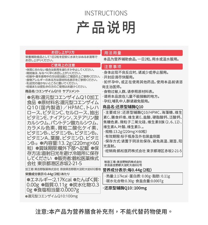 日本鹤松医药还原型辅酶Q10软胶囊 单瓶装