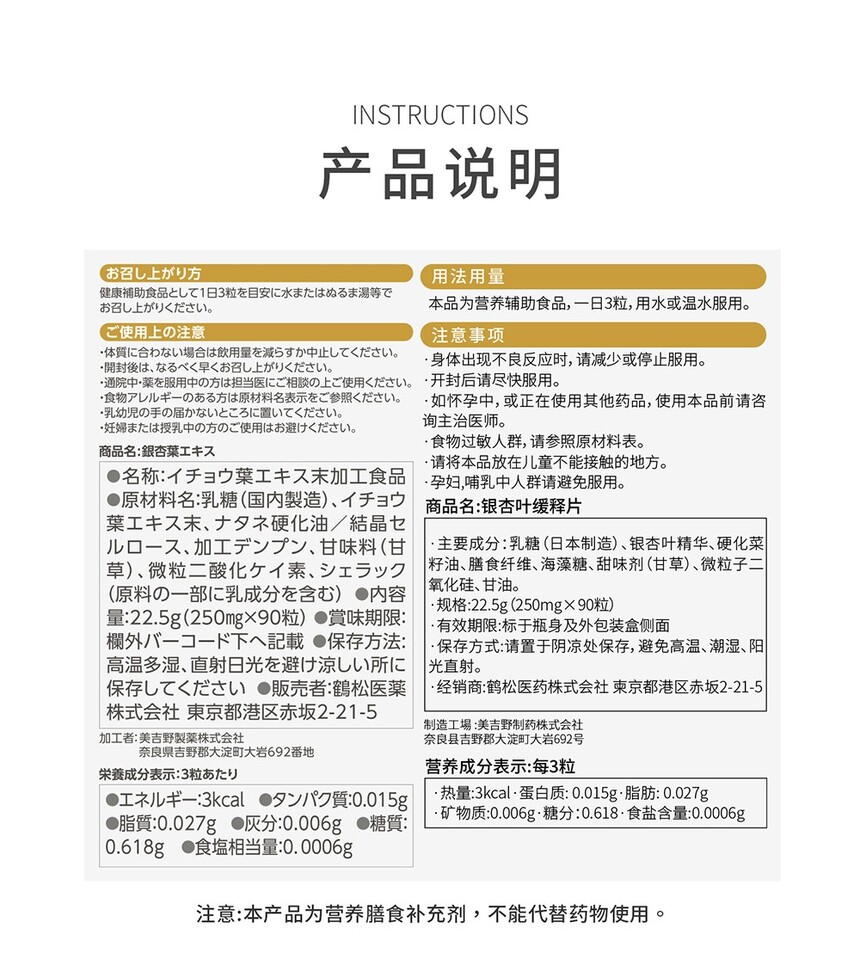 首页 >> 产品展示 >>产品详情 >> 日本鹤松医药汉方银杏叶缓释片银杏叶提取物 单瓶体验装